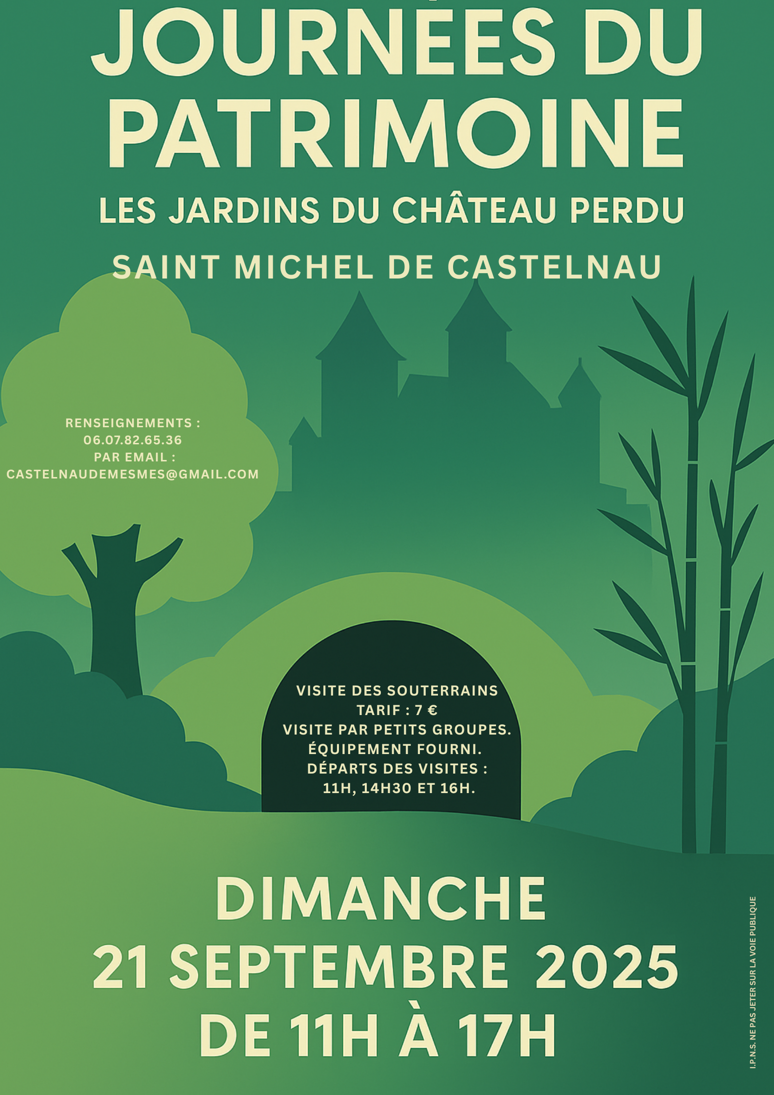 À l’occasion des Journées du Patrimoine, les Jardins du Château Perdu ouvrent leurs portes pour une expérience unique. Profitez de cette dernière visite de l’année pour explorer les mystérieux souterrains et plonger dans l’histoire fascinante de cette ancienne place forte médiévale.